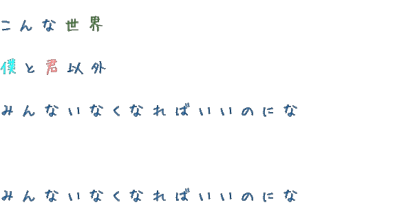 こんな世界 僕と君以外 みんないなくなればいいのにな これ Yahoo 知恵袋