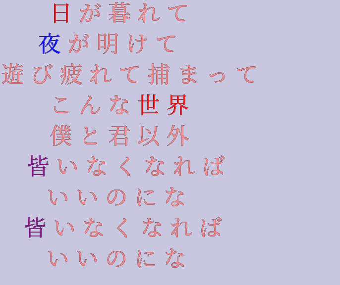 ボカロ 六兆年と一夜物語 こんな世界 僕と君以外 皆いなくなれば ゅ さんの明朝体デコメ