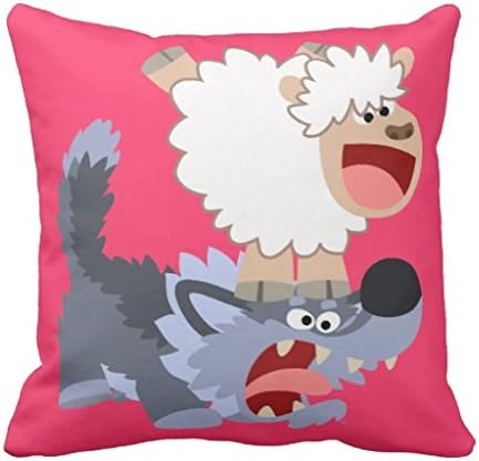 Amazon Co Jp かわいくよくはしゃぐな漫画のヒツジおよびオオカミの装飾用クッションクッションカバー 45cmx45cm おしゃれ かわいい インテリア コットン 素材 涼しい 雰囲気 お部屋や車 ホーム キッチン